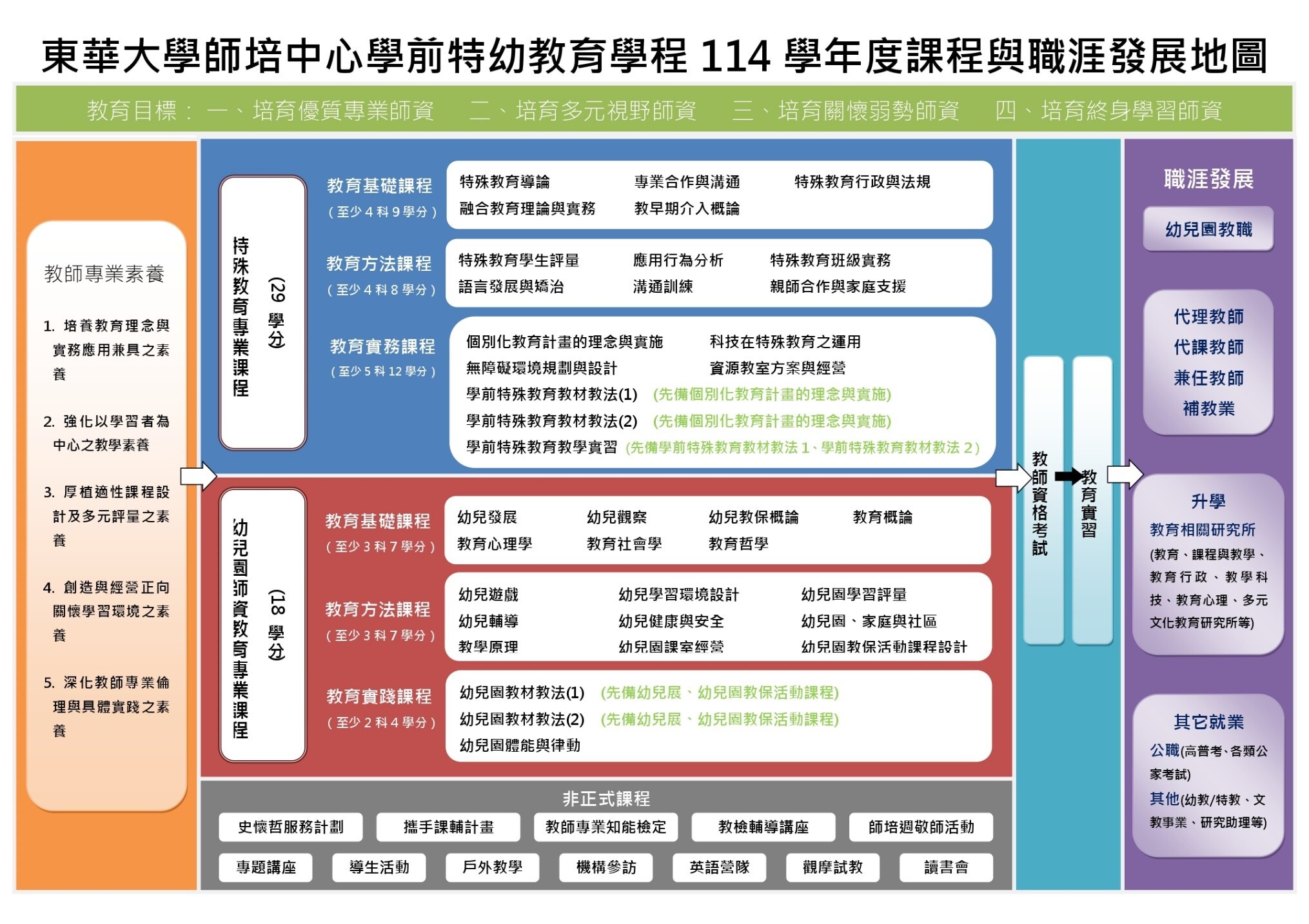 | 國小教育學程 | 特殊教育師資類科學前教育階段身心障礙組教育學程 |