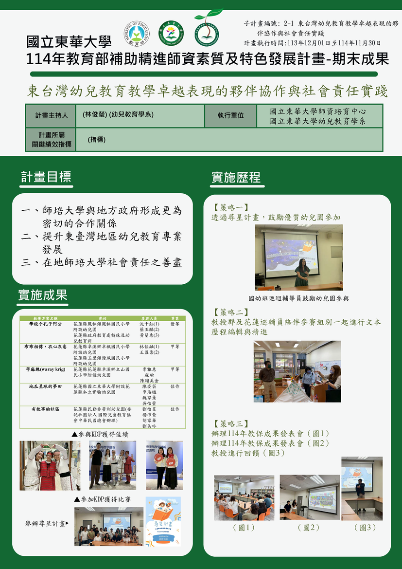 子計畫2-1 東台灣幼兒教育教學卓越表現的夥伴協作與社會責任實踐