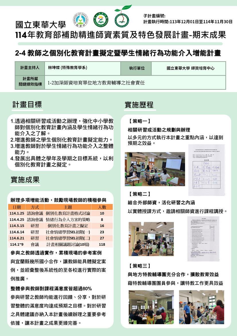子計畫2-4 教師之個別化教育計畫擬定暨學生情緒行為功能介入增能計畫