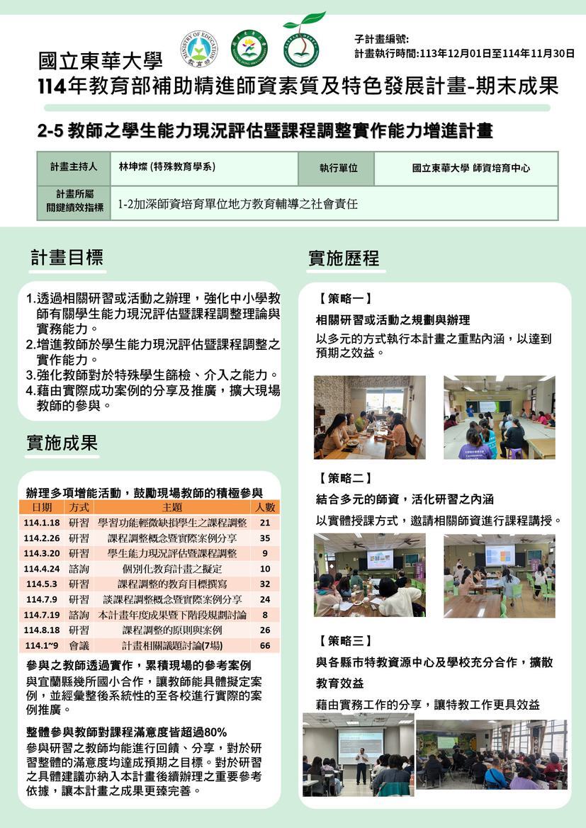 子計畫2-5 教師之學生能力現況評估暨課程調整實作能力增進計畫