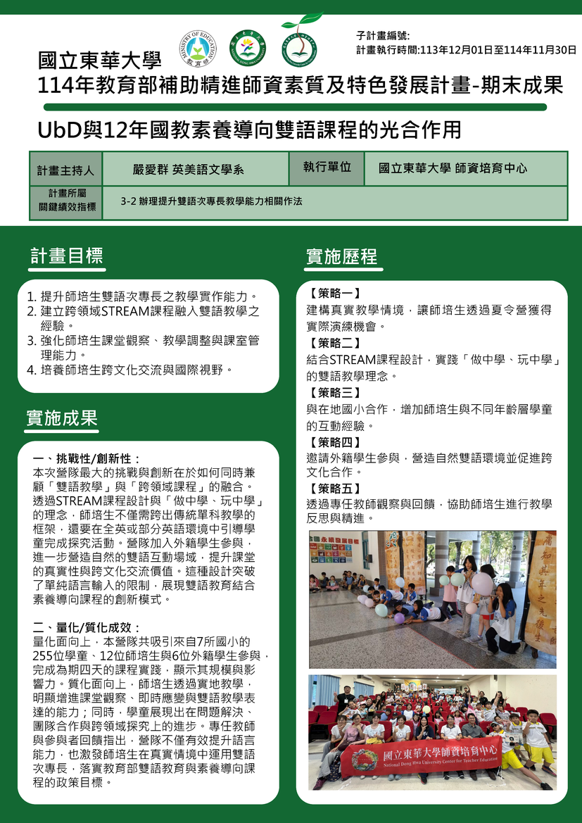 4-1-1 垂直整合、橫向連結東華大學雙語教學計畫(中等及小學)